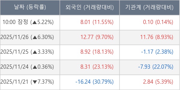 ※ 사모펀드 등 일부 기관의 순매매량은 표시되지 않음