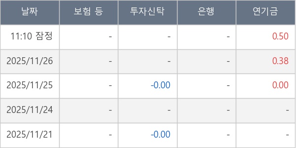 [표] 주요 기관별 순매매량 (단위 만주)