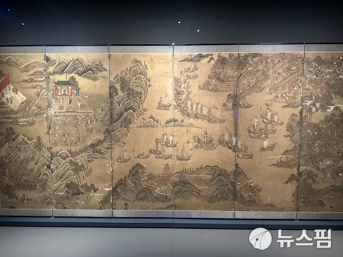 전시된 '정왜기공도병' 전반부의 첫 번째 병풍은 명의 육군과 수군의 출전, 조선에서의 환영, 출정 전 서약, 율림전투 드이 묘사돼 있다. 후반부의 두 번째 병풍에는 이순신이 전사한 노량해전, 순천왜성전투, 남해도 소탕작전 등 정유재란의 마지막에 해당되는 전투 장면이 담겼다.