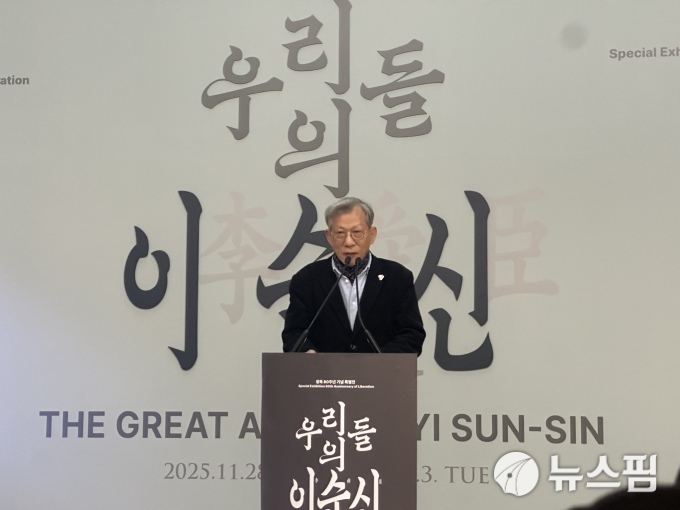 | [서울=뉴스핌] 이지은 기자 = '우리들의 이순신' 언론공개회에서 인사말을 건네는 유홍준 국립중앙박물관장. 2025.11.27 alice09@newspim.com |