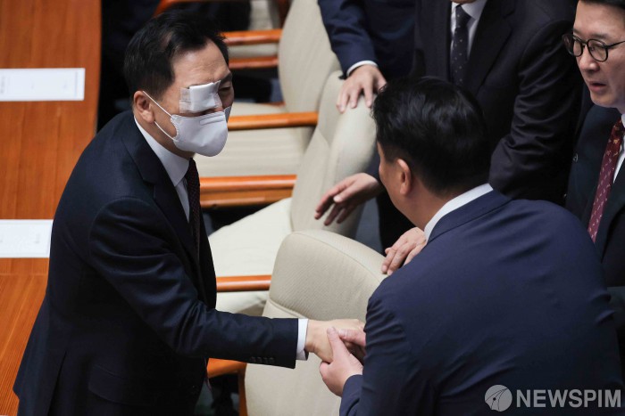 [서울=뉴스핌] 윤창빈 기자 = 김기현 국민의힘 의원이 27일 서울 여의도 국회에서 열린 본회의에 참석하고 있다. 2025.11.27 pangbin@newspim.com