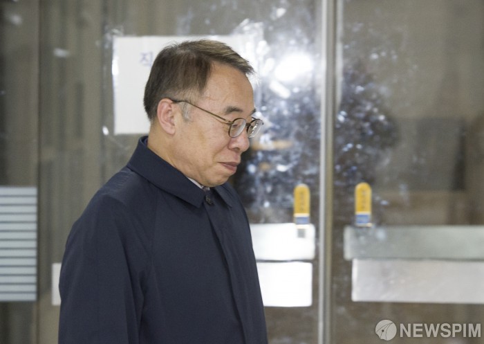 [서울=뉴스핌] 김학선 기자 = '사법농단' 의혹을 받는 임종헌 전 법원행정처 차장이 27일 서울 서초구 서울고등법원에서 열린 직권남용 권리행사 방해 등 혐의 항소심 선고공판을 마치고 청사 밖으로 나서고 있다. 임 전 법원행정처 차장은 2심 항소심 선고공판에서 징역 2년, 집행유예 3년을 선고 받았다. 2025.11.27 yooksa@newspim.com
