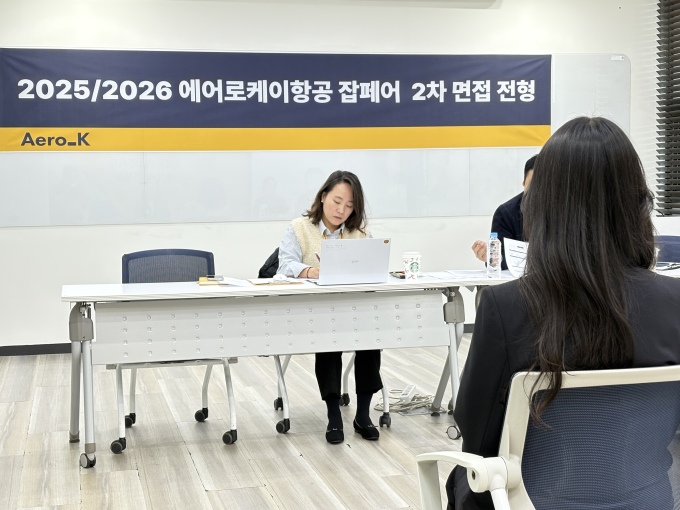 [대전=뉴스핌] 오영균 기자 = 에어로케이항공은 지난 3일 '2025/2026 에어로케이항공 잡페어' 당시 일반직 FREE PASS(서류·1차 면접 면제)를 부여받은 지원자들을 대상으로 최종면접을 진행한다고 27일 밝혔다. 지난 26일 열린 최종면접은 내달 초 또 한 번 진행된다.