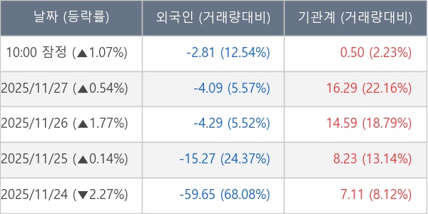 ※ 사모펀드 등 일부 기관의 순매매량은 표시되지 않음