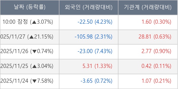 [표] 외국인ㆍ기관 순매매량 (단위 만주)