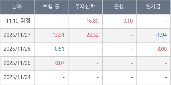 ※ 사모펀드 등 일부 기관의 순매매량은 표시되지 않음