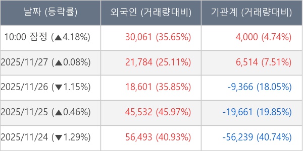 ※ 사모펀드 등 일부 기관의 순매매량은 표시되지 않음