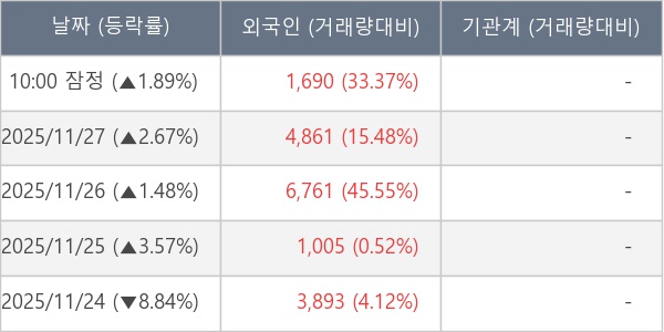 [표] 외국인ㆍ기관 순매매량 (단위 주)