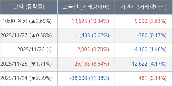 ※ 사모펀드 등 일부 기관의 순매매량은 표시되지 않음