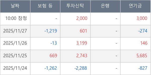 ※ 장중 매매동향은 잠정치이므로 실제 매매동향과 차이가 발생할수 있음