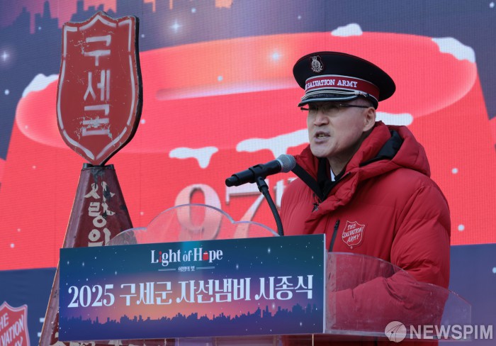 [서울=뉴스핌] 이길동 기자 =김병윤 한국 구세군 사령관이 28일 서울 종로구 광화문광장에서 열린 '2025 구세군 자선냄비 시종식'에서 감사 인사를 하고있다. 올해 자선냄비 캠페인 주제는 'Light of Hope-희망의 빛'으로, 시민 한 사람 한 사람이 '희망의 메신저'로 참여해 우리 사회의 어두움을 함께 밝히자는 메시지를 전한다는 의미다. 자선냄비에는 NFC 기반 기부 시스템이 처음 도입돼 현금이 없어도 스마트폰을 모금판에 한 번 태그하는 것만으로 앱 설치 없이 누구나 기부할 수 있다. 2025.11.28gdlee@newspim.com