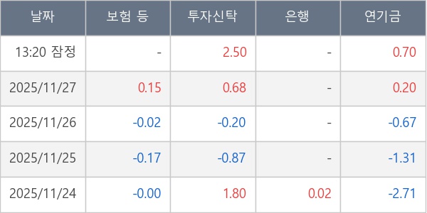[표] 주요 기관별 순매매량 (단위 만주)