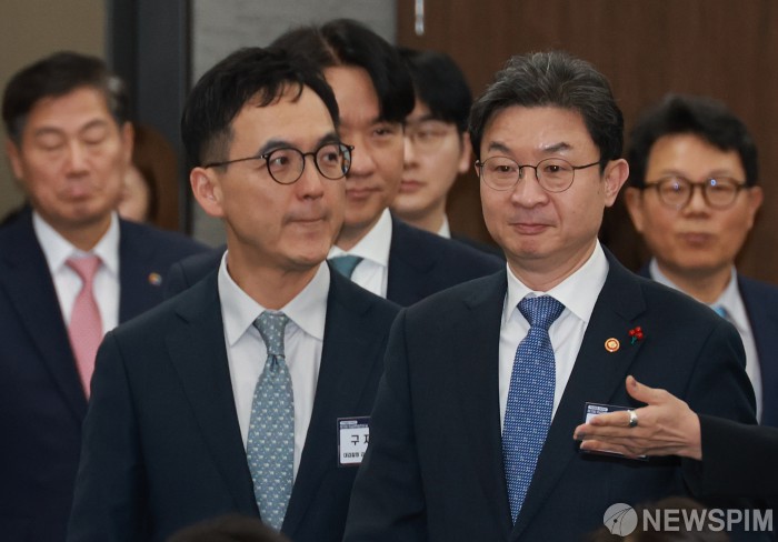 [서울=뉴스핌] 김학선 기자 = 이억원 금융위원장과 구자현 검찰총장 직무대행이 28일 서울 중구 은행회관에서 열린 자금세탁방지의 날 기념식에 참석하고 있다. 2025.11.28 yooksa@newspim.com