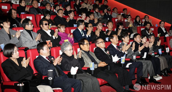 [서울=뉴스핌] 양윤모 기자 = 오세훈 서울시장이 28일 오후 서울 중구 초동의 '서울영화센터 개관식'에 참석해 박수를 치고 있다. 행사에는 배우 신영균 ,장미희, 박정자,이정재, 한예리, 예지원과 김한민(명량시리즈) 감독, 윤제균(해운대, 국제시장), 강윤성(중간계), 정지영(부러진 화살) 감독 등이 참석했다. 2015년 건립 계획 발표 후 10년 만에 준공된 '서울영화센터'는 영화인 대상 전문성 교육 및 시민대상 프로그램을 운영한다. 2025.11.28 yym58@newspim.com