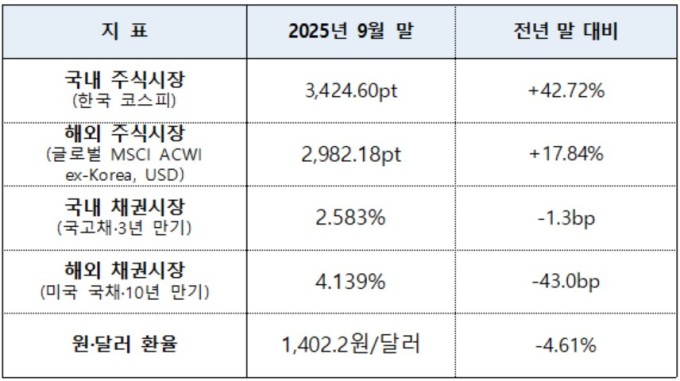 주요 금융 지표 현황 [자료=국민연금공단] 2025.11.28 sdk1991@newspim.com