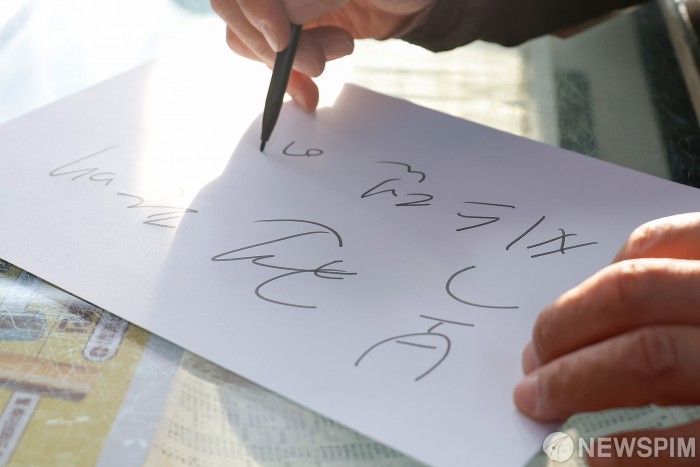 [서울=뉴스핌] 류기찬 기자 = 로또 판매 시스템의 오류가 발생한 28일 오후 서울 영등포구의 한 로또 복권판매점에서 주인이 로또 구입 불가 안내 문구를 작성하고 있다. 2025.11.28 ryuchan0925@newspim.com