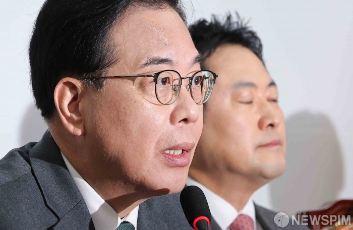 [서울=뉴스핌] 윤창빈 기자 = 송언석국민의힘 원내대표가 1일 서울 여의도 국회에서 열린 최고위원회의에서 모두발언을 하고 있다. 2025.12.01 pangbin@newspim.com
