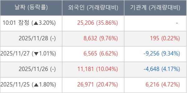 [표] 외국인ㆍ기관 순매매량 (단위 주)