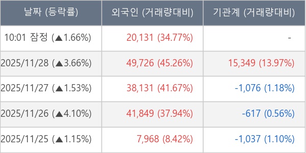 [장중수급포착] 이녹스첨단소재, 외국인 5일 연속 순매수행진... 주가 +1.66%