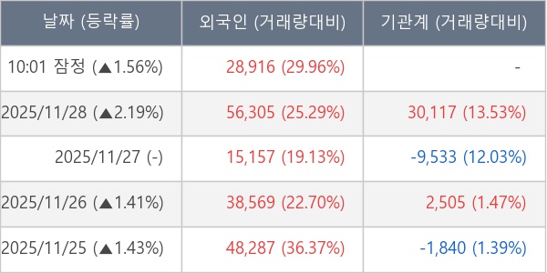 [표] 외국인ㆍ기관 순매매량 (단위 주)