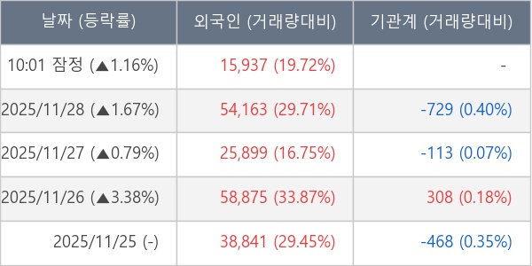 [표] 외국인ㆍ기관 순매매량 (단위 주)