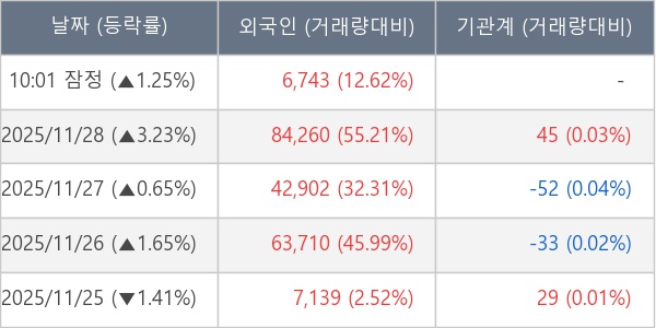 [표] 외국인ㆍ기관 순매매량 (단위 주)