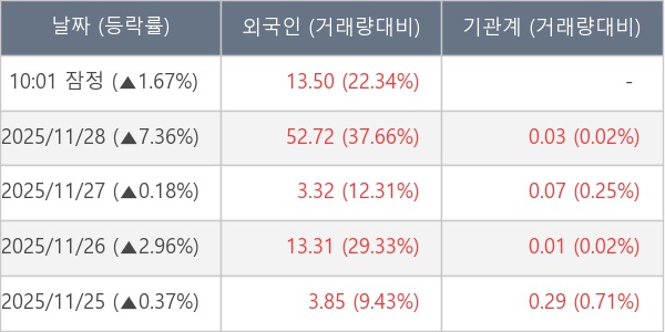 [표] 외국인ㆍ기관 순매매량 (단위 만주)