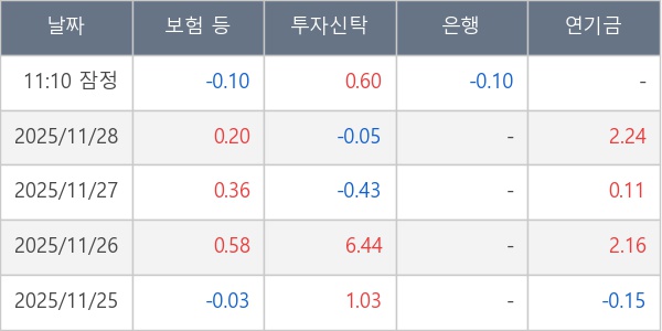 [표] 주요 기관별 순매매량 (단위 만주)