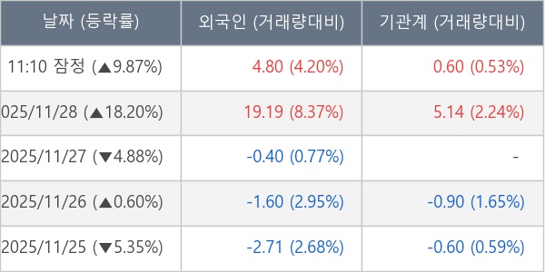 ※ 사모펀드 등 일부 기관의 순매매량은 표시되지 않음