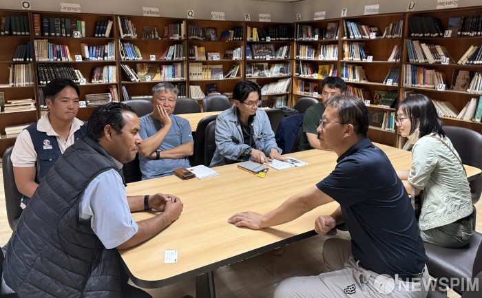 [서울=뉴스핌] 최보근 국가유산청 차장(오른쪽)이 30일 오후(현지 시간) 이집트 룩소르 소재 룩소르박물관을 방문해 알라 멘샤위 이집트 최고유물위원회 소속 룩소르박물관장(왼쪽) 등 관계자들과 공적개발원조 사업 추진 방향을 논의하고 있다. [사진=국가유산청] 2025.12.01 photo@newspim.com