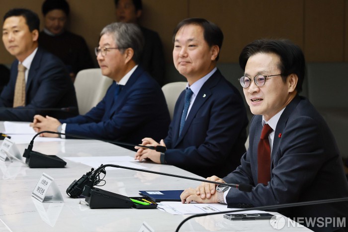[서울=뉴스핌] 김정관 산업통상부 장관이 1일 서울 중구 대한상공회의소 EC룸에서 열린 민관합동 산업투자전략회의를 주재하고 있다. 이번 회의는 지난 11. 16일 대통령 주재 ‘한-미 관세협상 후속 민관합동회의’후속으로서 올해 10대 제조업 투자 계획과 3분기까지의 투자 이행상황을 점검하고 국내투자 촉진 방안을 논의했다. 송재혁 삼성전자 사장, 최준영 기아자동차 사장, 서강현 현대제철 사장, 문재영 HD현대인프라코어 사장, 류 열 에스오일 사장을 비롯한 반도체, 자동차 등 10대 제조업 기업 대표 및 관계자가 참석했다. [사진=산업통상부] 2025.12.01 photo@newspim.com