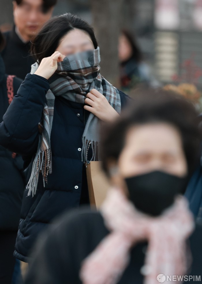 [서울=뉴스핌] 김학선 기자 = 전국 대부분 지역의 아침 기온이 영하권으로 떨어져 본격적인 겨울 추위가 시작된 2일 오전 서울 종로구 세종대로사거리에서 시민들이 방한용품으로 무장한 채 출근을 서두르고 있다. 2025.12.02 yooksa@newspim.com