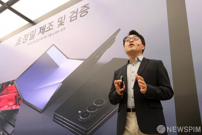 [서울=뉴스핌] 최지환 기자 = 강민석 삼성전자 부사장이 2일 오전 서울 서초구 삼성 강남에서 열린 삼성전자 갤럭시 Z 트라이폴드 출시 미디어데이에서 갤럭시 Z 트라이폴드를 소개하고 있다. 2025.12.02 choipix16@newspim.com