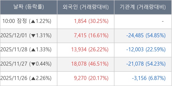 [표] 외국인ㆍ기관 순매매량 (단위 주)