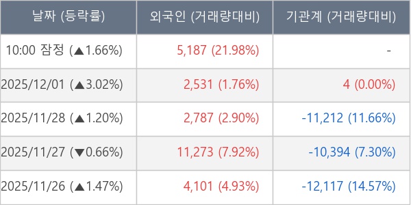 [표] 외국인ㆍ기관 순매매량 (단위 주)