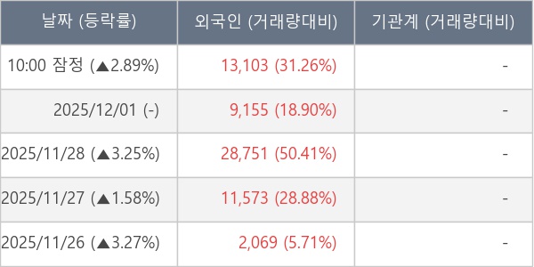 [표] 외국인ㆍ기관 순매매량 (단위 주)
