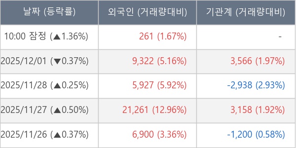 [장중수급포착] 파인텍, 외국인 5일 연속 순매수행진... 주가 +1.36%