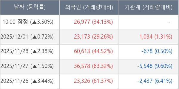 [표] 외국인ㆍ기관 순매매량 (단위 주)