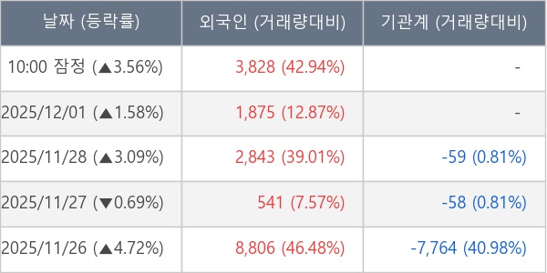 [표] 외국인ㆍ기관 순매매량 (단위 주)