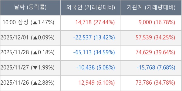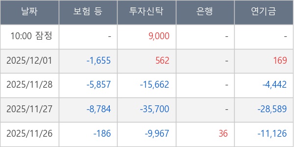※ 사모펀드 등 일부 기관의 순매매량은 표시되지 않음