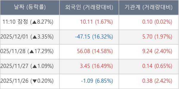※ 사모펀드 등 일부 기관의 순매매량은 표시되지 않음