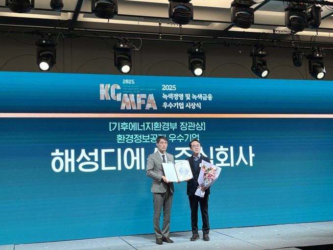 [서울=뉴스핌] 이나영 기자= 해성그룹 계열사이자 반도체 부품 전문 제조기업 해성디에스가 한국환경산업기술원에서 주관한 '2025년 녹색경영 및 녹색금융 우수기업 시상식'에서 기후에너지환경부(기후부) 장관상을 수상했다고 1일 밝혔다.