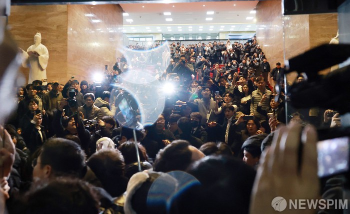 | [서울=뉴스핌] 이형석 기자 = 비상계엄이 선포된 지난해 12월 3일 밤 서울 여의도 국회의사당 본관 출입문에 긴장감이 감돌고 있다. 2024.12.03 leehs@newspim.com |