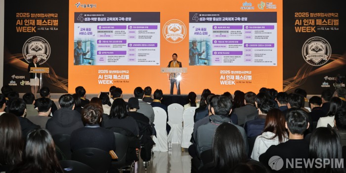 [서울=뉴스핌] 양윤모 기자 = 오세훈 서울시장이 2일 오후 서울 동대문구 DDP 아트홀에서 개최된 '2025 청년취업사관학교 AI 인재 얼라이언스 출범식'행사에 참석 비젼을 선포하고 있다. 이번 행사는 AI 시대에 필요한 역량을 쉽고 재미있게 경험할 수 있도록 기획된 개방형 지역 연계 축제이다. 2025.12.02 yym58@newspim.com