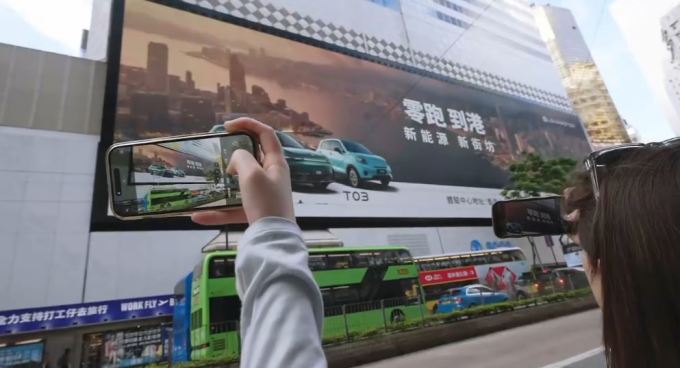 | [사진 = 립모터 공식 웨이보] 중국 신흥 전기차 브랜드 립모터(零跑汽車·LEAPMOTOR / 9863.HK)의 홍콩 내 첫 공식 매장 오픈 소식을 알리는 전광판 광고 이미지. |