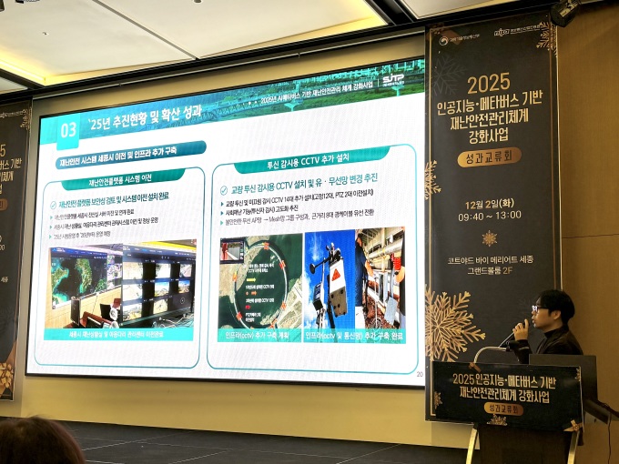 | 세종시는 2일 과학기술정보통신부 주최 '인공지능·메타버스 기반 재난안전관리체계 강화사업 성과교류회'에서 인공지능 기반 재난안전관리 구축 사례를 공유했다. [사진=세종시] 2025.12.02 jongwon3454@newspim.com |