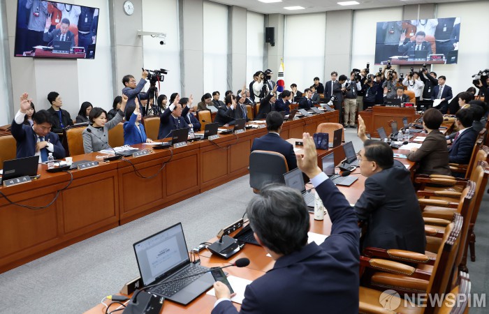 | [서울=뉴스핌] 정일구 기자 = 29일 서울 여의도 국회에서 열린 운영위원회 전체회의에서 토론 종결 관련 거수 표결이 진행되고 있다. 2025.10.29 mironj19@newspim.com |