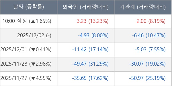 ※ 사모펀드 등 일부 기관의 순매매량은 표시되지 않음
