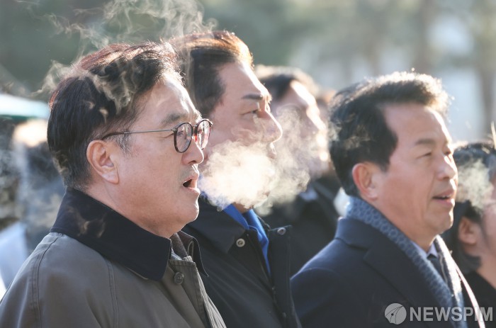 입김 내뿜으며 애국가 부르는 우원식 국회의장