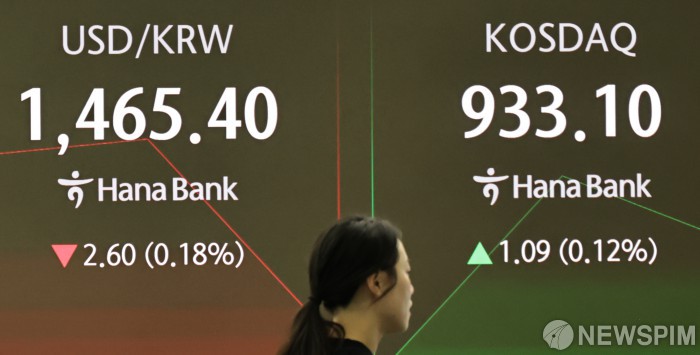 [서울=뉴스핌] 양윤모 기자 = 4일 오전 코스피가 전장 종가보다 17.29 포인트(0.43%) 하락하며 4019.01 로, 코스닥은 1.09 포인트(0.12%) 상승한 933.10으로 장을 시작한 가운데, 서울 중구 하나은행 딜링룸에서 직원들이 업무를 보고 있다. 서울외환시장에서 달러/원 환율은 전장 대비 2.60원 하락한 1465.40원에 주간거래를 시작했다. 2025.12.04 yym58@newspim.com